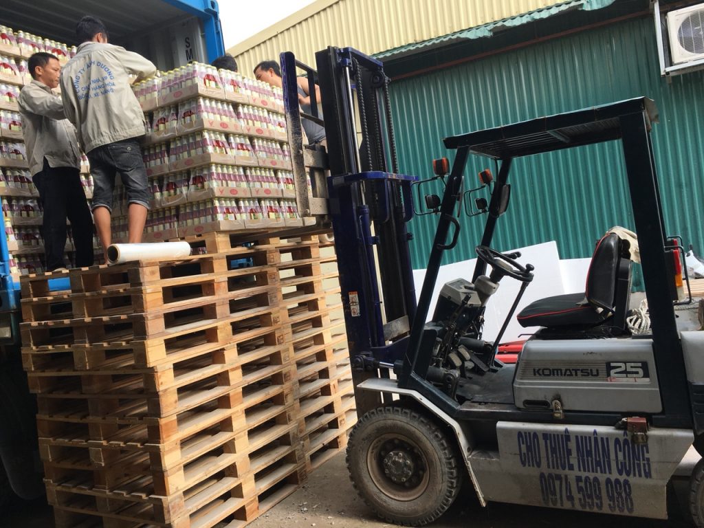 | Hạ cont 40ft hàng palet | 2.100.000đ/cont | 6 người + xe nâng 3.5T |