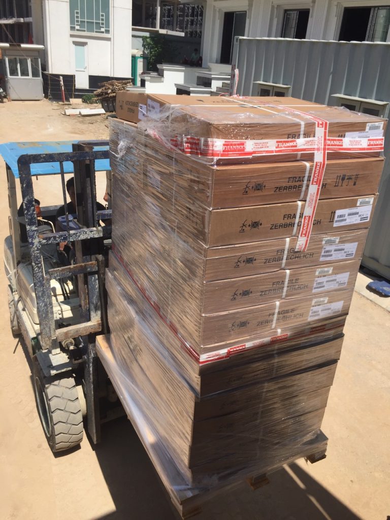 - Dây đai và pallet nhựa/gỗ: Đảm bảo hàng hóa được cố định chắc chắn, không bị xê dịch khi lên xuống xe tải.